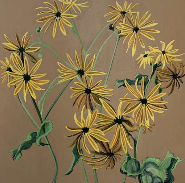 All of the paintings in Langley’s exhibit are from 2019, while the prints that she has for sale showcase some of her older work. Langley used to use oil paints, but has moved into the world of acrylic painting for this exhibit. She said she does not want to stick to clichés in her flower paintings; she wants her paintings to have a “punch” to them.